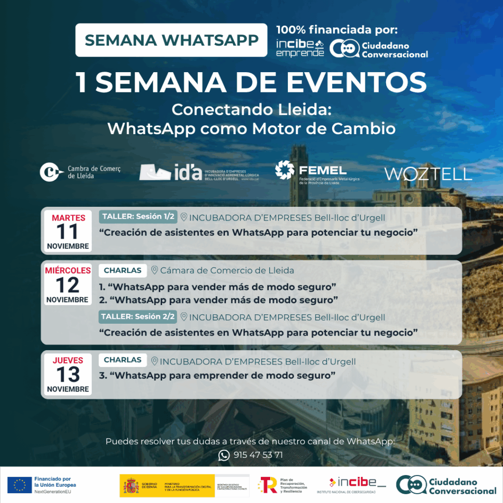 Lleida acollirà entre demà dimarts, 11 de novembre, i el dijous, 13 la Setmana del Whatsapp, una activitat organitzada per la Cambra de Comerç de Lleida,…