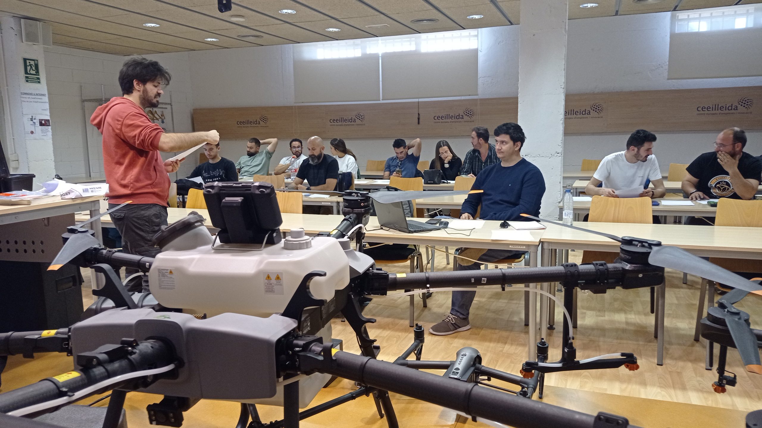 Aerofor, empresa acollida al servei de CEEICloud del CEEILleida, va impartir un curs de pilot d’aplicador de fitosanitaris a través de drons. Les sessions, que van tenir lloc a l’aula de formació del CEEILleida el passats 31 de març, i 1 i 2 d’abril, estava dirigit a agricultors, tècnics agrícoles, gestors de finques, entre d’altres, com per exemple, tècnics que desenvolupen treballs de camp, on el dron millora el rendiment i la seguretat del seu treball.