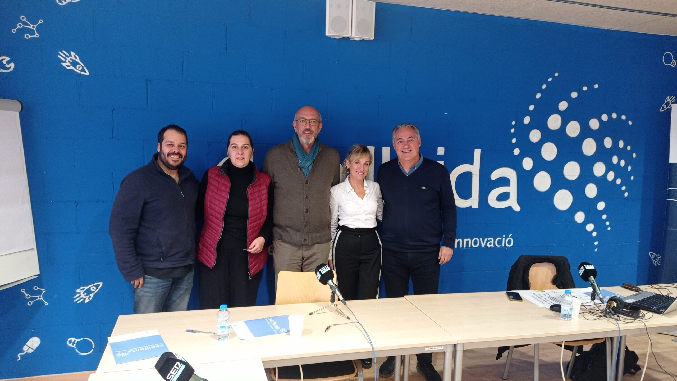 Amb Dídac Merino, soci fundador de Masqueit; José Alonso, director de la Càtedra Santander d’Emprenedoria Universitària de la UdL, i Antoni Piñol, director del CEEILleida