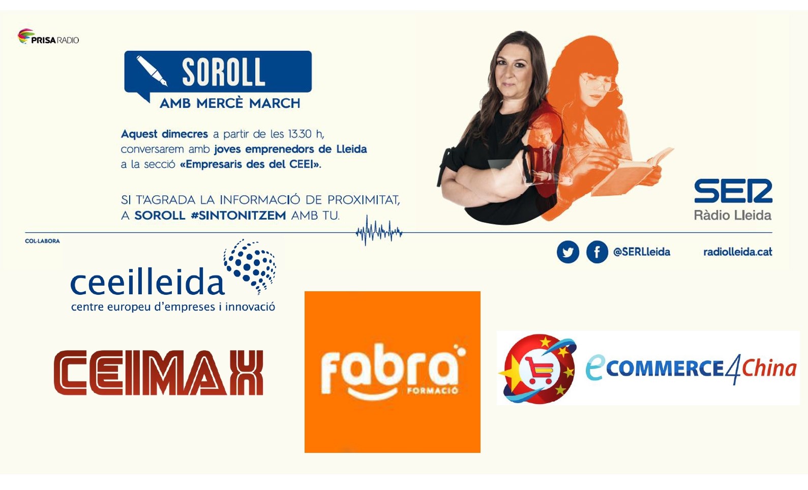 Les empreses Fabra Formació, Ceimax i 4Ecommerce China, totes tres instal·lades en el viver del CEEILleida, participaran aquest dimecres, 17 de febrer, en el debat del programa Empresaris que Ràdio Lleida emetrà des de l’aula de formació del CEEILleida.