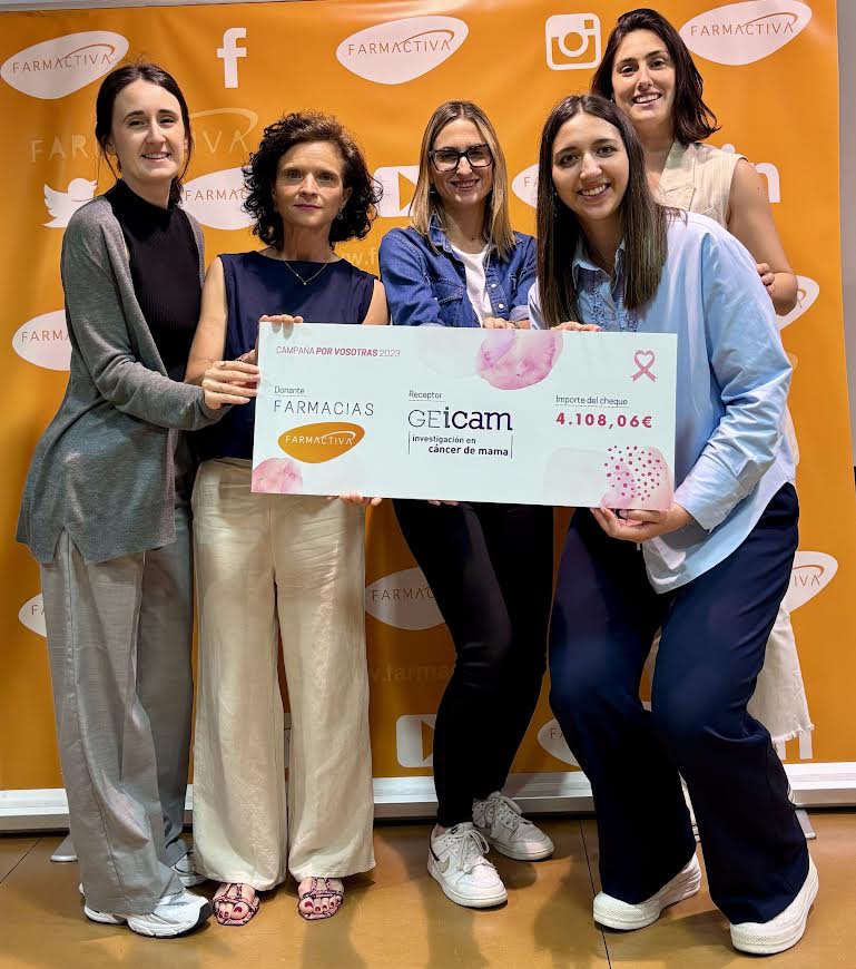 Farmactiva, que té la seva oficina de comunicació instal·lada al CEEILleida, ha lliurat un xec per valor de 4108,06€ a GEICAM (Grup de Recerca en Càncer de Mama de referència a Espanya), resultat de la campanya solidària “Per vosaltres!” , en la qual van participar més de 150 farmàcies associades a Farmactiva per recaptar fons contra el càncer de mama.
