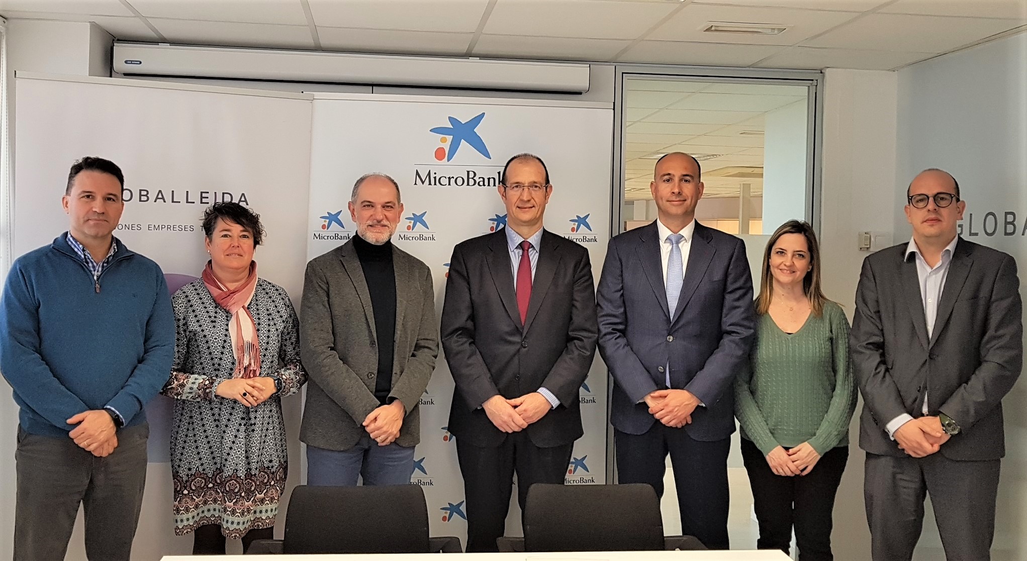 El conseller delegat de GLOBALLEIDA, Oriol Oró, i el director de Negoci de MicroBank, Àngel Soto, han signat un acord de col·laboració per facilitar el finançament d’iniciatives d’autoocupació, l’activitat emprenedora i els projectes empresarials de caràcter innovador a través de microcrèdits.