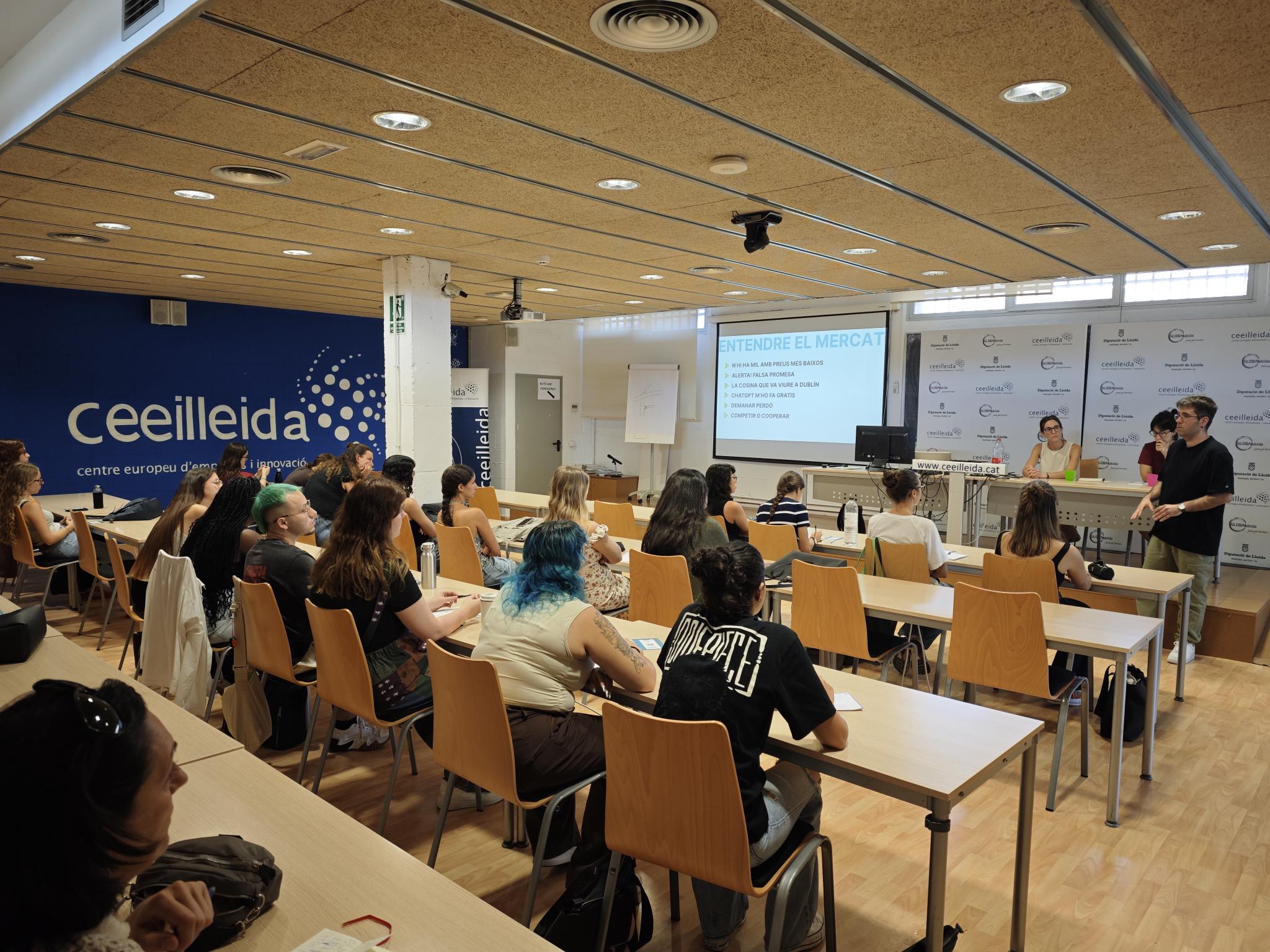 La cooperativa Growords Serveis Lingüístics, instal·lada en el viver del CEEILleida va oferir el passat divendres la càpsula formativa “Com traduir i no morir en l’intent” dirigida a estudiants del doble grau de Llengües Aplicades i Traducció i Estudis Anglesos de la UdL. La sessió, que va tenir lloc a l’aula de formació del CEEILleida, va abordar qüestions com les bones pràctiques, la fixació de preus i la importància d’una gestió organitzada.