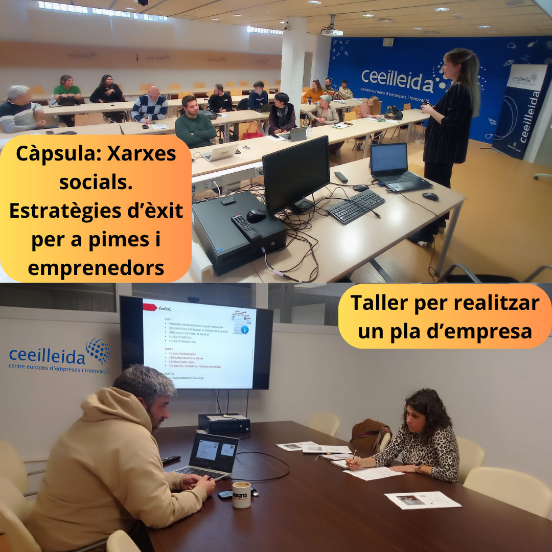 En aquest passat mes de febrer hem ofert dues càpsules formatives sobre Xarxes socials. Estratègies d’èxit per a pimes i emprenedors, que va anar a càrrec d’Ariadna Coll, especialista en comunicació, marketing i esdeveniments, i un taller per realitzar un pla d’empresa, que va anar a càrrec del tècnic del CEEILleida Salvador Pifarré. Tant les càpsules formatives, com el taller de pla d’empresa, compten amb el suport del programa Emprèn Cat, del Departament d’Empresa i Treball.