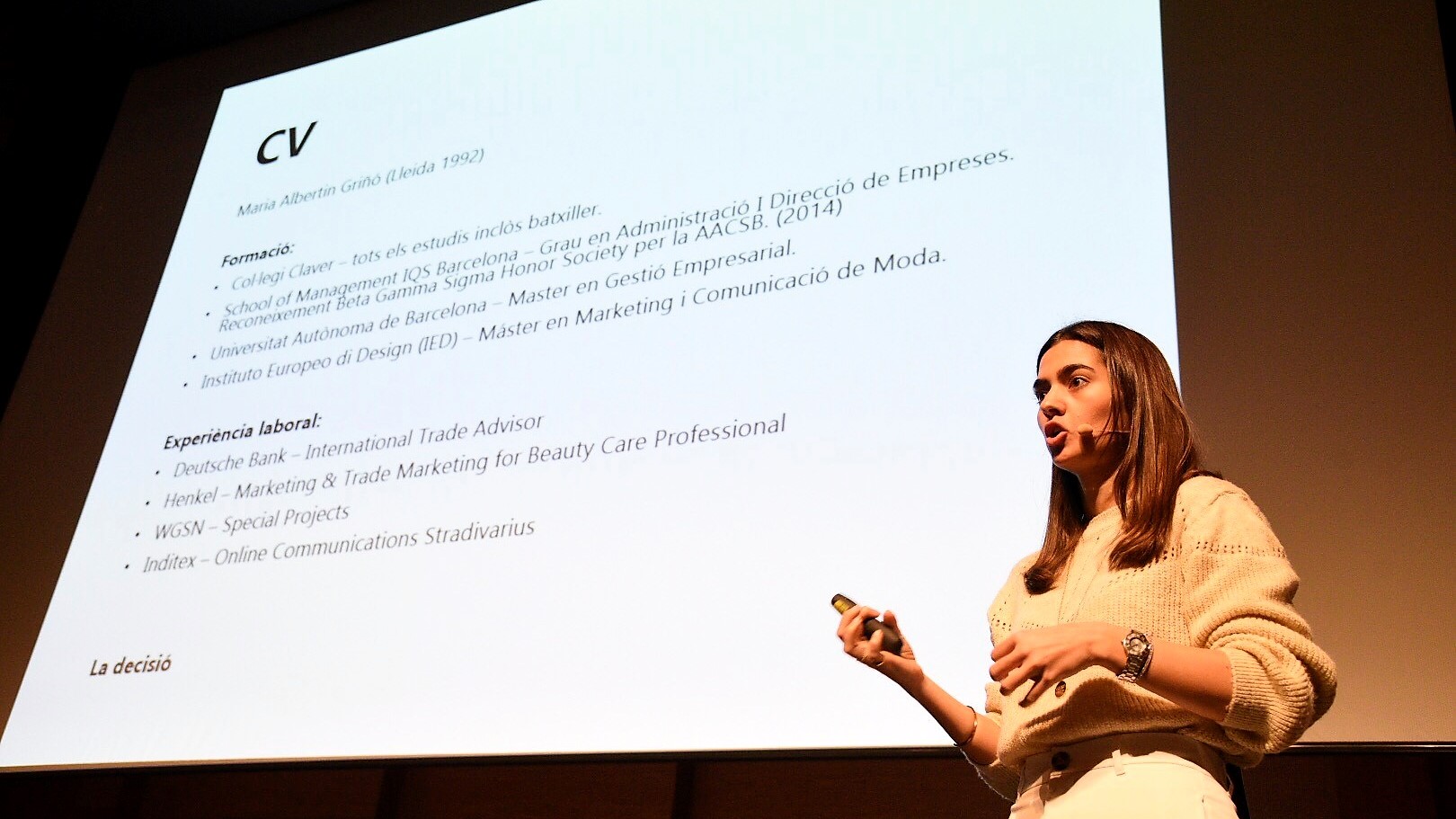 Tot seguit a l’espai d’Experiències en clau lleidatana: Talent de Ponent arreu del món” han participat tres empresàries lleidatanes explicant la seva experiència en el món de l’empresa. La pintora, Mireia Serra coneguda amb pseudònim artístic Lily Brik,; una muralista rural que acaba de ser seleccionada per participar en el concurs Graffiti without Gravity, de l’Agència Espacial Europea. També ens ha acompanyat la Maria Albertín, creadora de la seva pròpia marca de bosses de mà i sabates, que ha aconseguit fer-se un lloc a les principals ciutats europees i Teresa Carles al capdavant de l’empresa Teresa Carles, dedicada a la restauració i alimentació vegetariana i flexiteriana, que ens ha explicat com Millorar la qualitat de vida de les persones mitjançant l’alimentació saludable, el coneixement i la tecnologia.