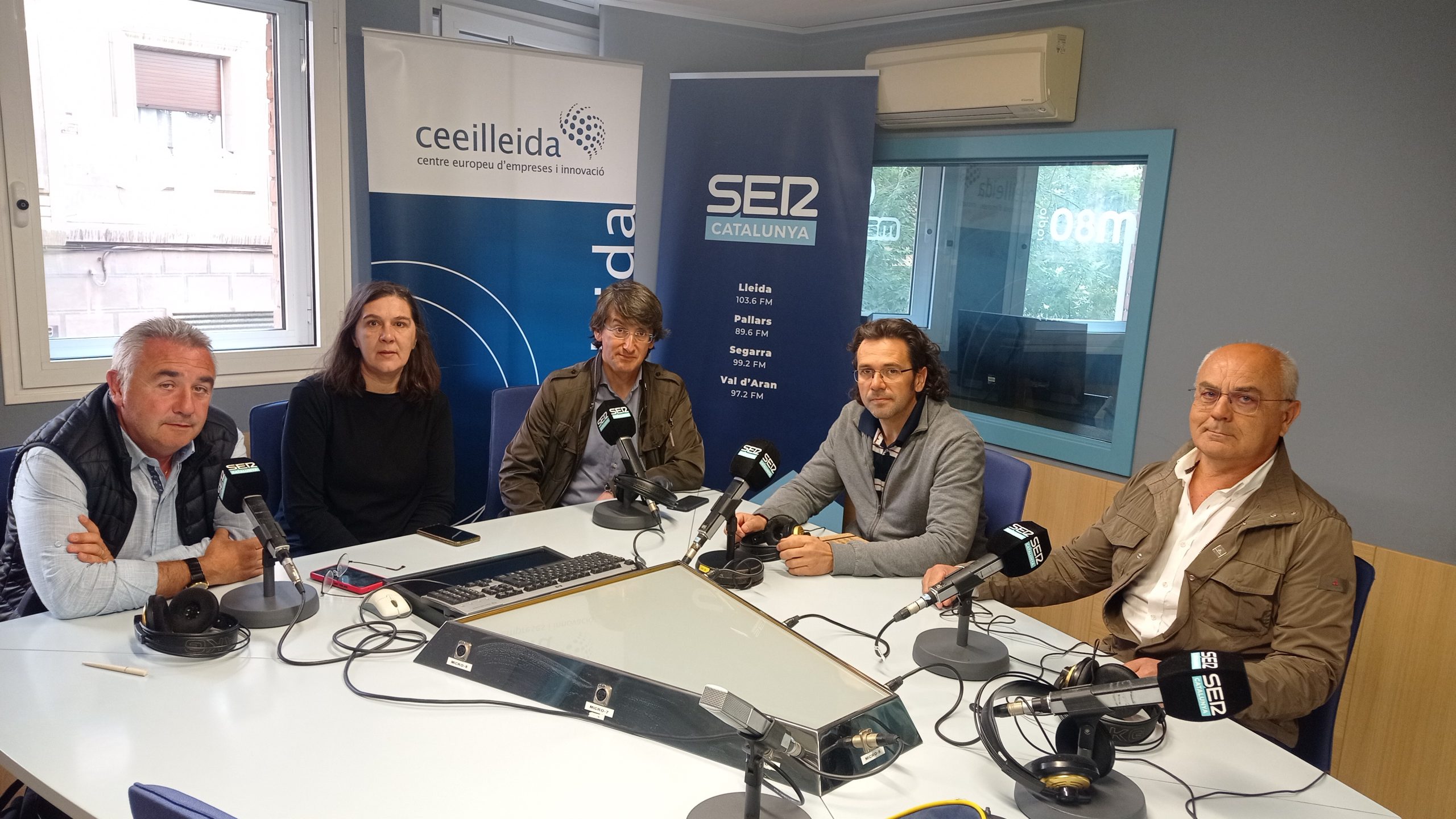 D’esquerra a dreta, Pere Roqué (ASAJA), Mercè March (Ràdio Lleida), Manel Simón (Afrucat), Josep Sellart (UP) i Joan Carles Massot (JARC)