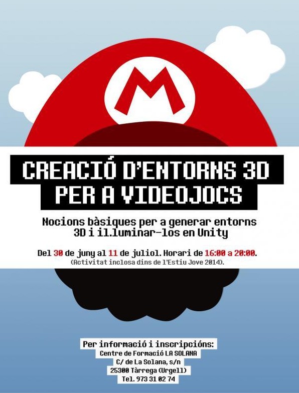 Manuel Usero, de l’empresa Computer Games Artist (CGA) , instal·lada al Ceitàrrega, que forma part de la Xarxaceilleida que gestiona el consorci Globalleida, ha organitzat un curs de creació d’entorns 3D per a videojocs, dins les activitats de l’estiu jove 2014 amb la col·laboració del Centre de Formació la Solana i l’Ajuntament de Tàrrega.