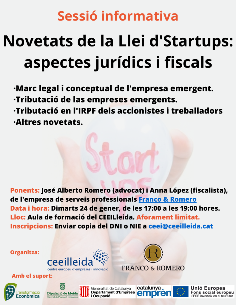 Sessió informativa al CEEILleida: ‘Novetats de la Llei d’Startups: aspectes jurídics i fiscals’