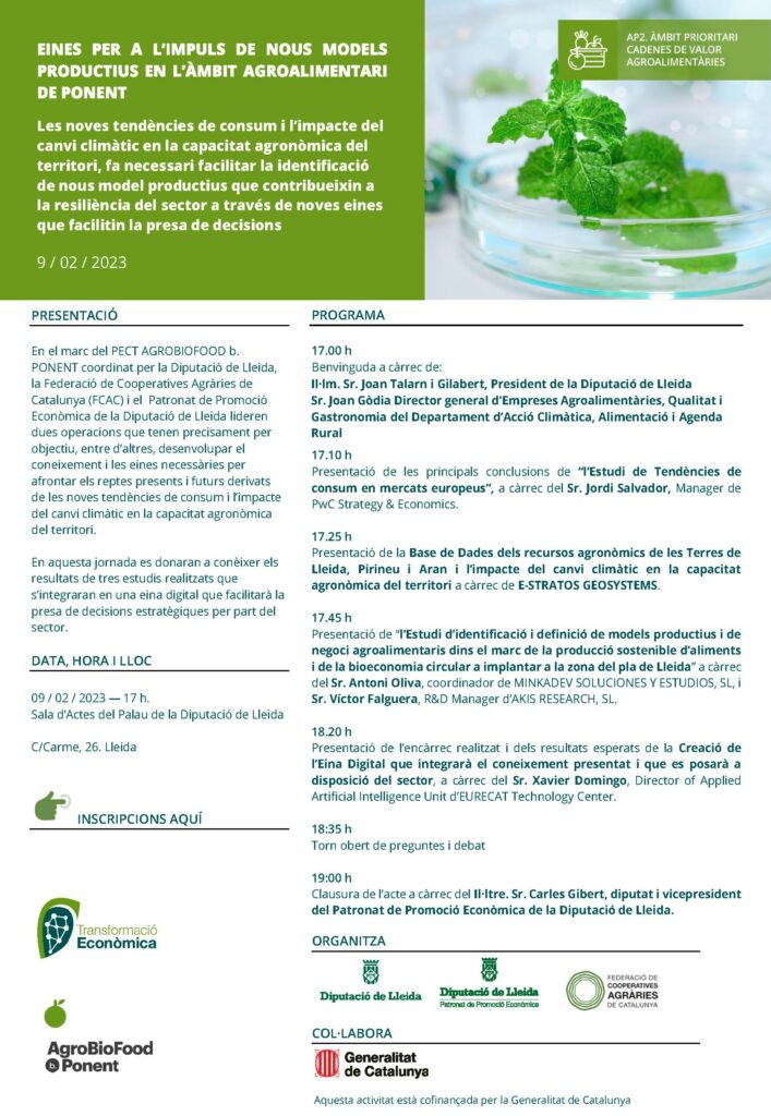 Jornada: Eines per a l’impuls de nous models productius en l’àmbit agroalimentari de Lleida