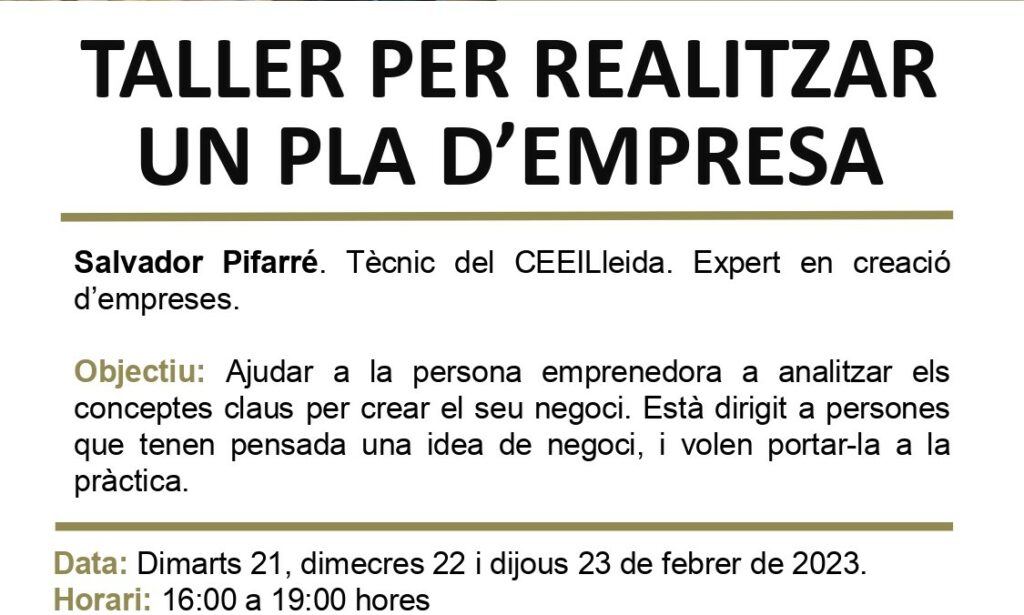 Taller sobre com realitzar un pla d’empresa, el 21, 22 i 23 de febrer al CEEILleida