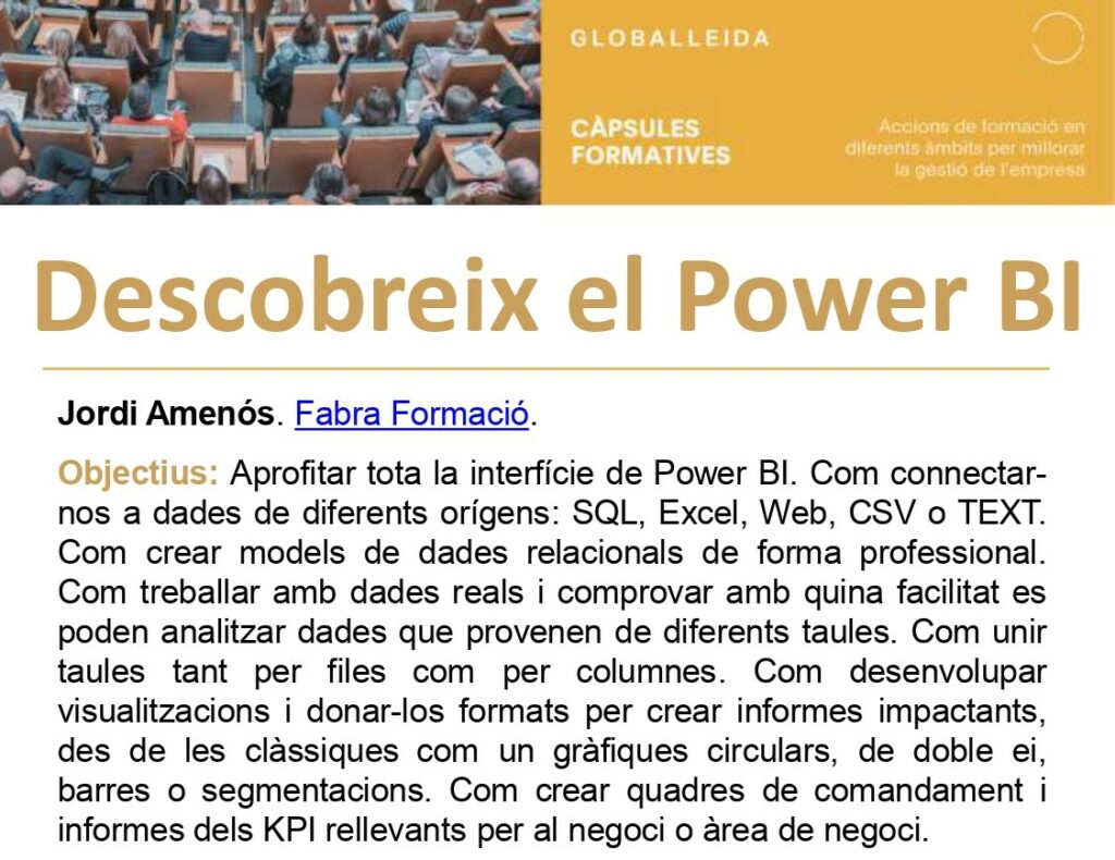El CEEILleida ofereix aquest juliol la càpsula formativa Descobreix el Power BI, un curs de 8 hores, dividides en dues sessions, que anirà a càrrec…