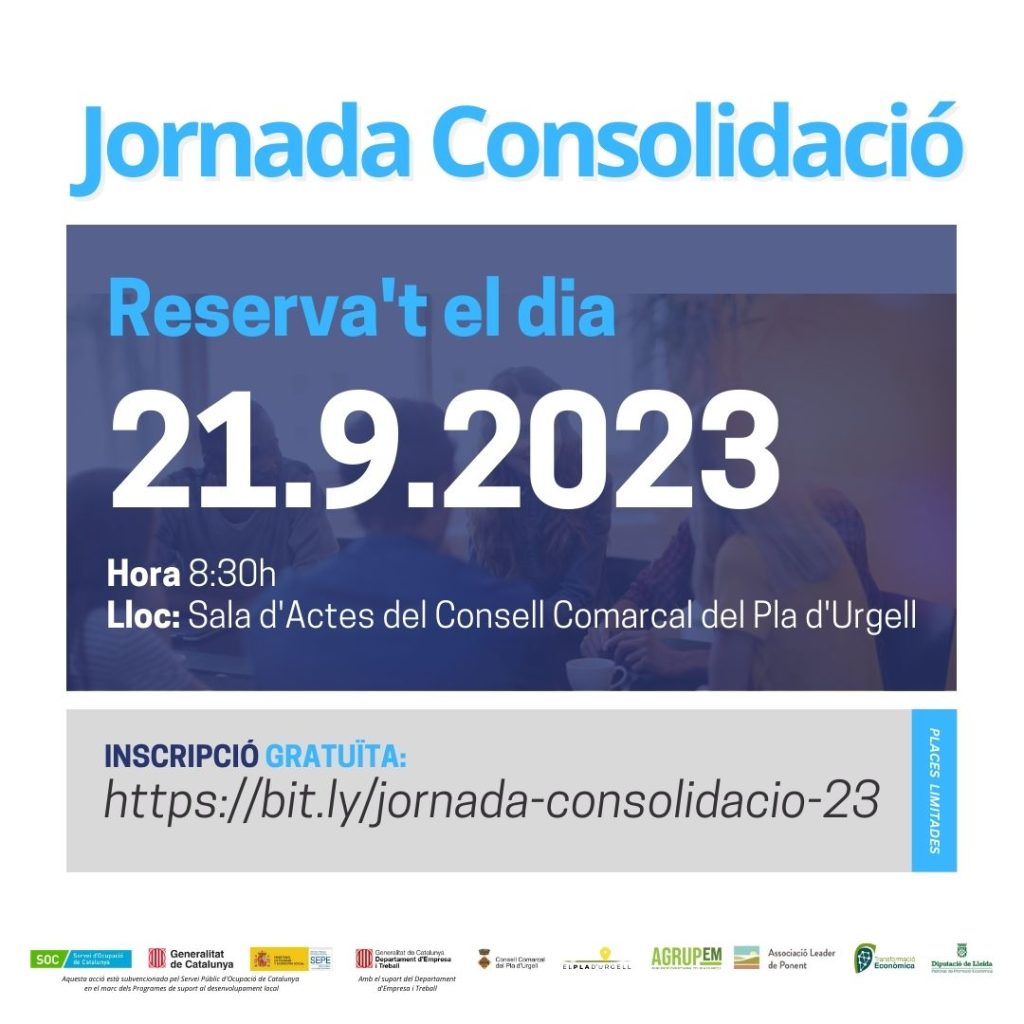 Participa a la Jornada de Consolidació del proper 21 de setembre del 2023 a les 8.30h a la Sala d'Actes del Consell Comarcal del Pla d'Urgell (C/Prat…