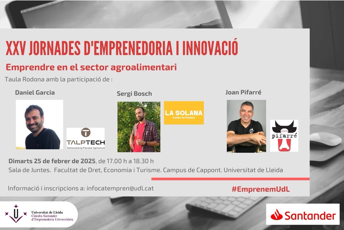 La Càtedra Santander d’Emprenedoria Universitària, en el marc de les XXV Jornades d’Emprenedoria i Innovació, organitza la taula rodona “Emprendre en el sector agroalimentari”.