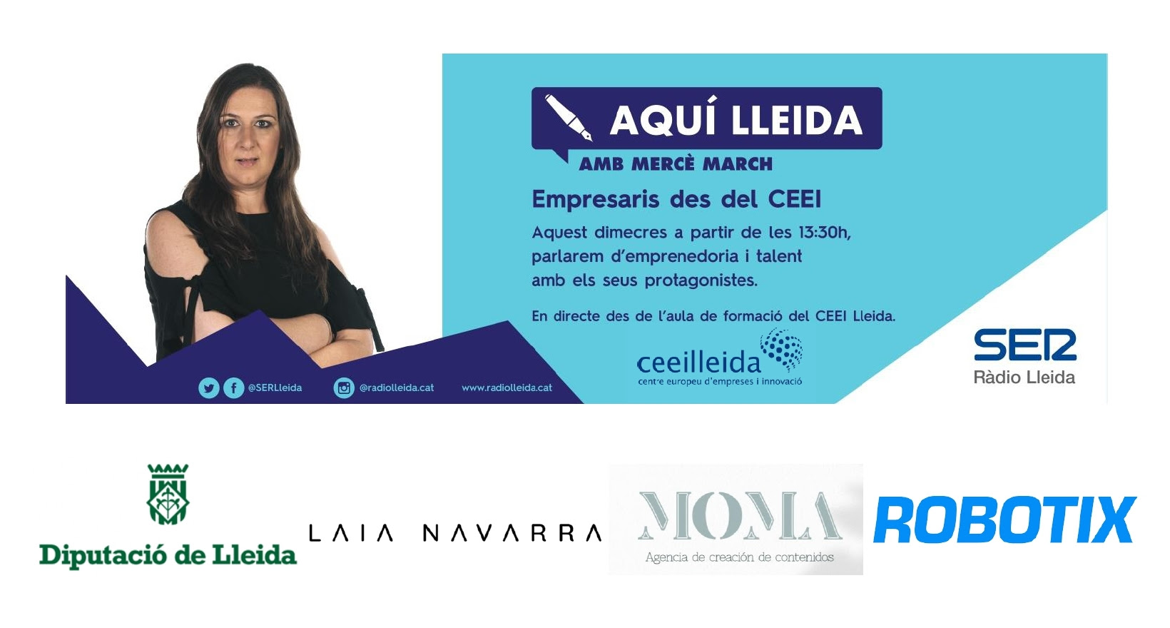 L’aula de formació del CEEILleida torna a convertir-se aquest dimecres en un plató de ràdio, amb l’emissió del programa Empresaris, de Ràdio Lleida-Cadena SER, i en el que hi participaran la diputada de Polítiques d’Igualtat de la Diputació de Lleida, Helena Martínez Siurana, i les emprenedores del CEEILleida Laia Navarra, de l’empresa de vídeo marketing Laia Navarra; Erika Marfil, de Robotix, i Maria Izcara, de l’Agencia MOMA.